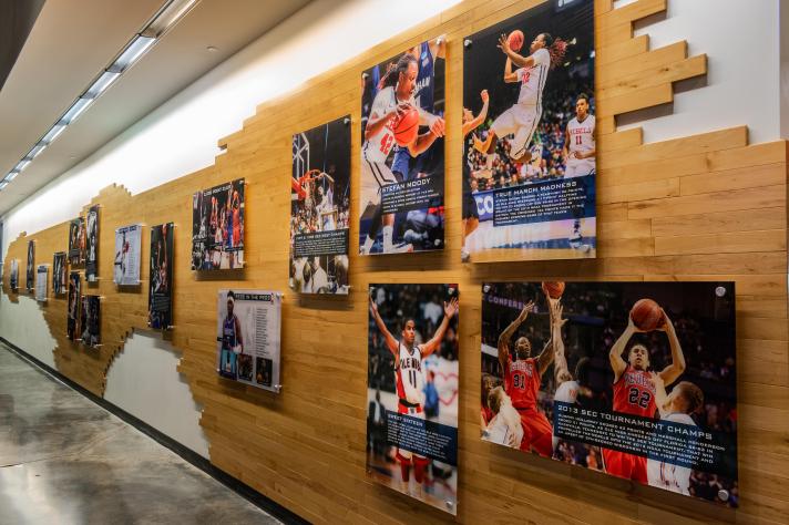The Ole Miss men have played in the NCAA Tournament a total of nine times, with more than half of their appearances coming since the turn of the century. In 2001, the Rebels had their most postseason success and advanced to the Sweet Sixteen, where they would lose to Arizona. The women’s team has enjoyed even more prosperity, fighting their way into 5 Elite Eights in the 19 tournaments of which they’ve been a part. Van Chancellor was perhaps the most transformational figure for the women’s basketball program, helping guide the Rebels to 14 tournament appearances. Lining the concourse at the Pavilion are photos and informational plaques highlighting these appearances and other important moments in Ole Miss men’s and women’s basketball history.