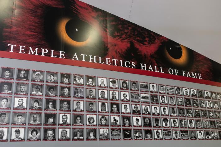 The halls of Liacouras are decorated with the photos of some of the school’s most accomplished and remarkable athletes, making up the Temple Athletics Hall of Fame. Above the seating bowl, the Ring of Honor likewise highlights some of the basketball program’s biggest stars and most influential players.