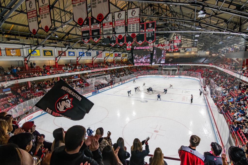 Northeastern University purchased Boston Arena in 1979, briefly calling it Northeastern Arena before it was renamed Matthews Arena in 1982 in honor of former Board of Trustees chairman George Matthews. The Huskies basketball and hockey programs – both men’s and women’s – have continuously played here ever since.
