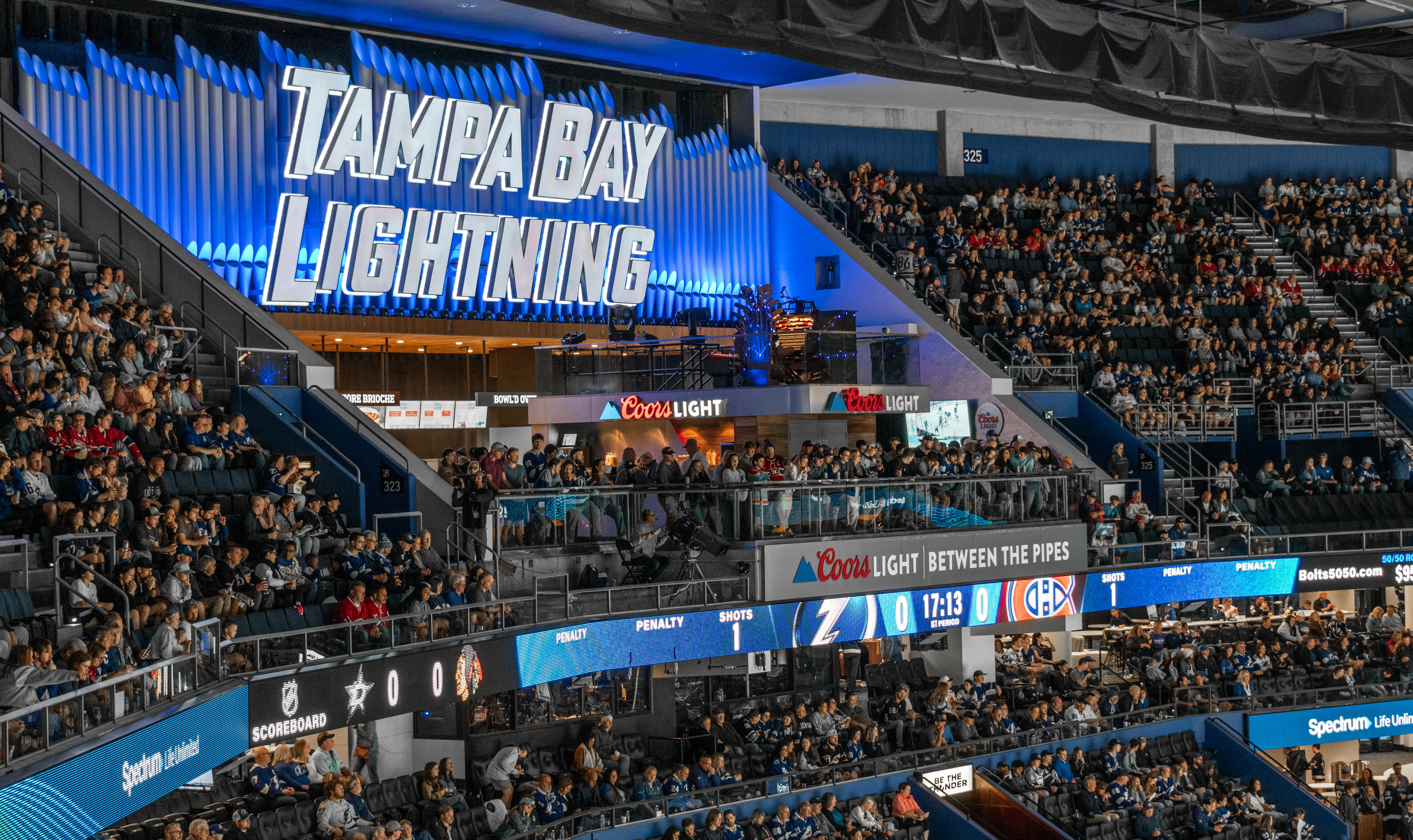 Before you even enter the building, the gameday excitement is already buzzing outside. Thunder Alley, a large entertainment plaza outside the arena’s main entrance, is full of fans relaxing, chatting it up and pre-gaming at the brewery in the adjacent parking garage. The space also hosts watch parties when the Bolts are in the playoffs, along with occasional concerts.