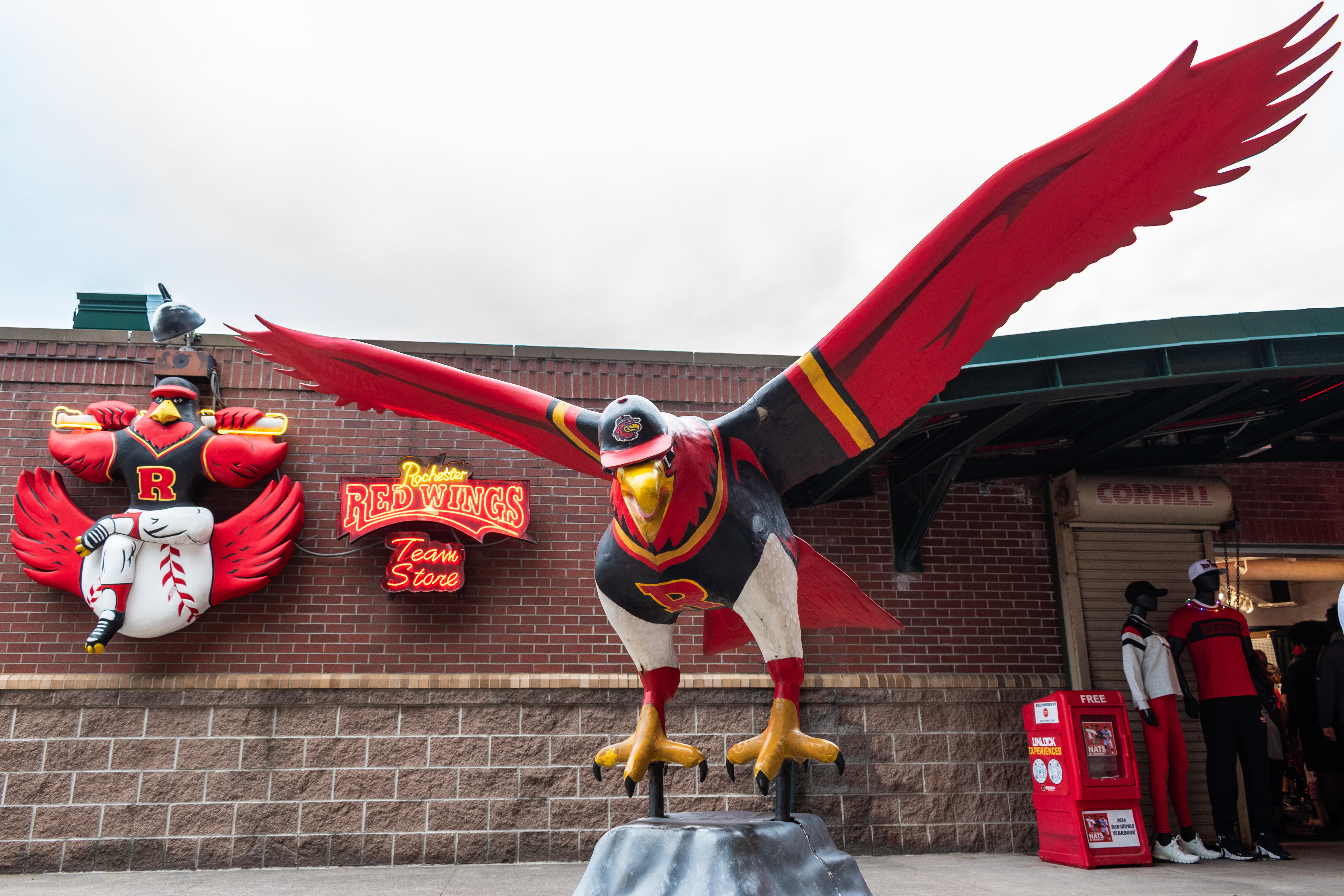Rochester’s success and storied past is mirrored in the gameday atmosphere of Innovative Field. Unlike other clubs that are simply a copy-paste of the same minor league experience, the Red Wings have their own distinct identity with many time-honored twists and traditions. To start, the team takes the field to “Here Come the Red Wings“, a song composed by legendary Rochester musician Fred Costello, who has served as Rochester’s ballpark organist for more than four decades.