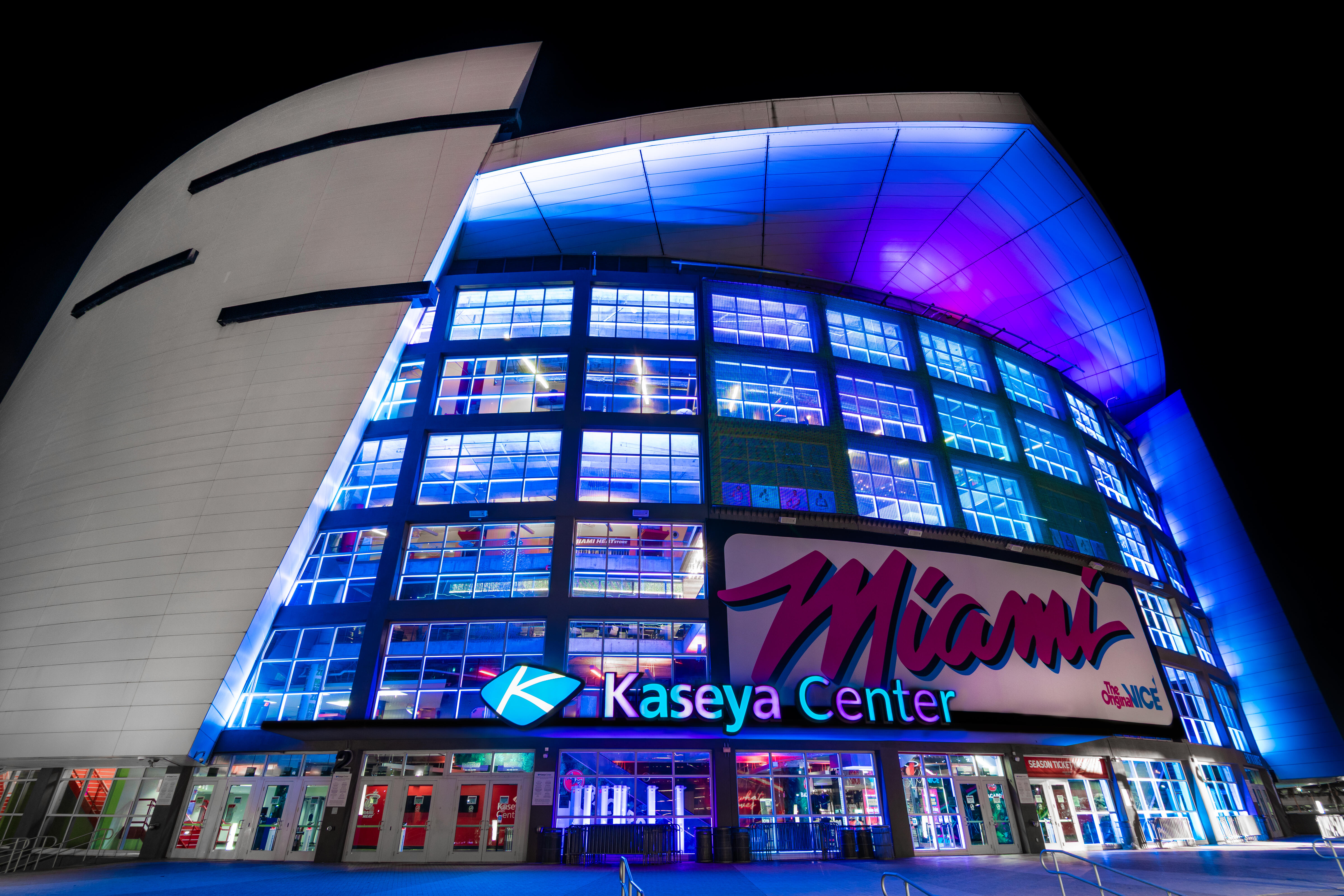 Abutting beautiful Biscayne Bay, the Kaseya Center is a landmark of the downtown Miami cityscape and has been home to the NBA’s Miami Heat for more than a quarter century. The venue first opened on New Years Eve in 1999, with the Heat playing their first game in the venue just a couple days later on January 2, 2000, a win over their in-state foe Orlando Magic.