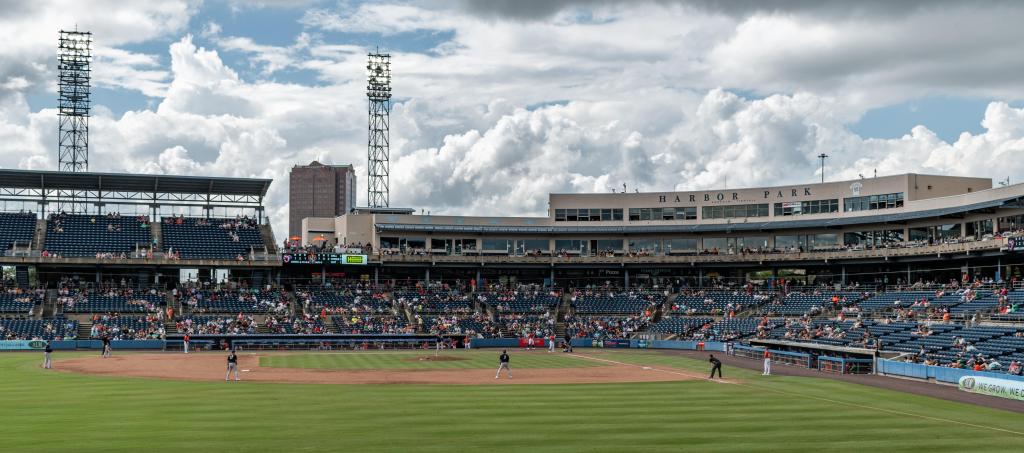 Harbor Park’s design, while uninspiring, truly maximizes space and allows for large crowds thanks to the pair of party decks in left and right field, as well as the restaurant in the right field corner. The ballpark’s three tiers of seating also means that every fan in the house can enjoy a sweeping vista of the field and riverfront beyond.