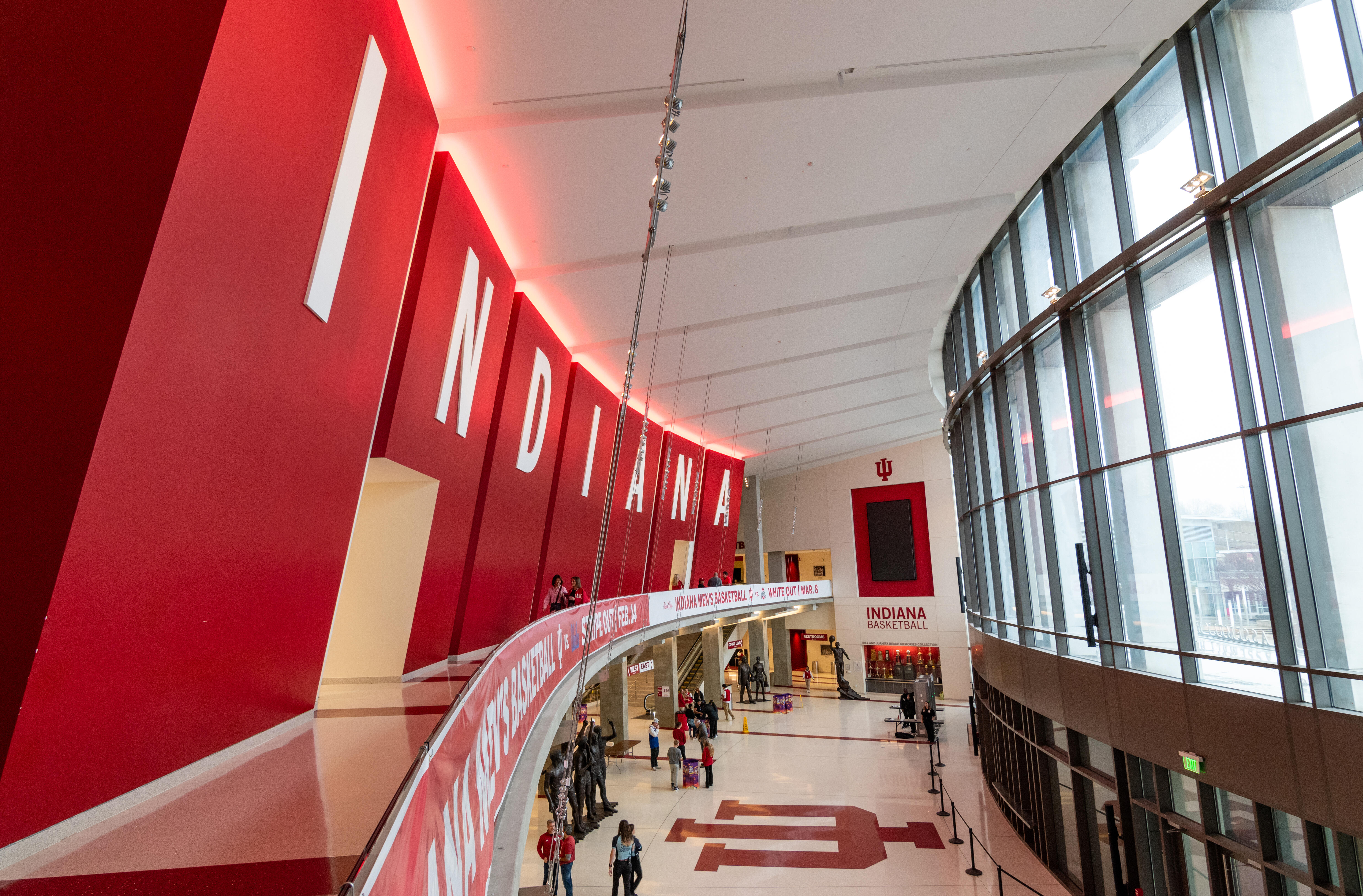 Having been designed in a modernist style of sorts, the arena features a distinct concourse setup and several quirky passageways underneath the main foyers. These subterranean hallways offer glimpses into the Big Ten Network studio booth and the teams’ equipment room, in addition to providing access to the Hoosiers team store.